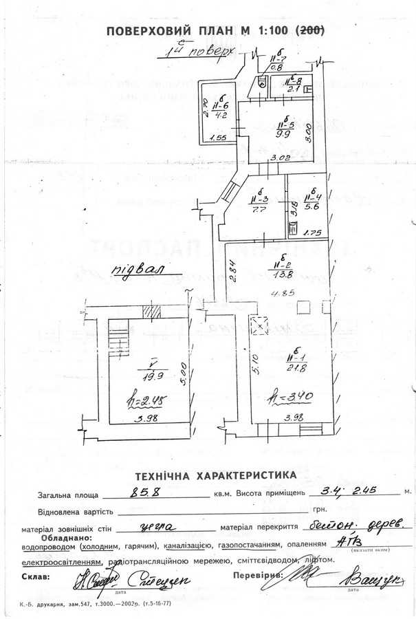 Площа: 65,9 кв.м. (1 поверх) + 19,9 кв.м. (підвал)