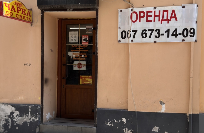 Магазин в центрі міста, площею 33,8 м.кв., з ремонтом, фасадний вхід, прохідне місце, всі комунікації. Ціна 30дол/кв.м.